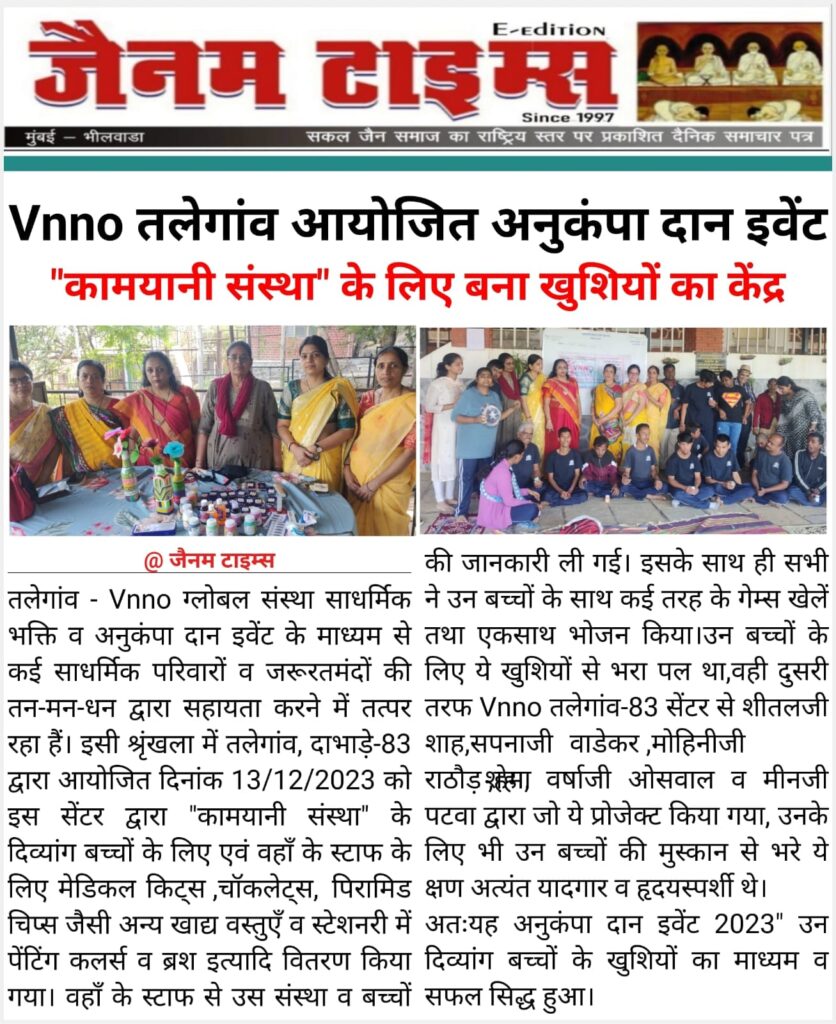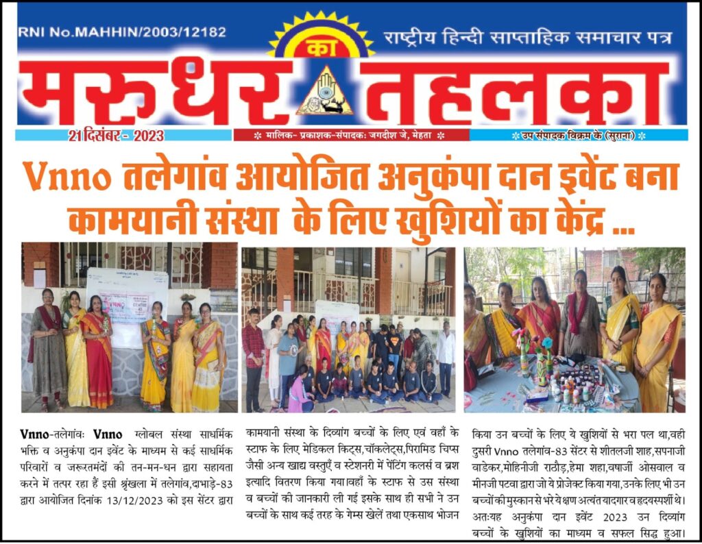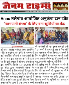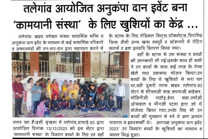 VNNO तलेगांव आयोजित अनुकंपा दान इवेंट बना कामयानी संस्था के लिए खुशियों का केंद्र